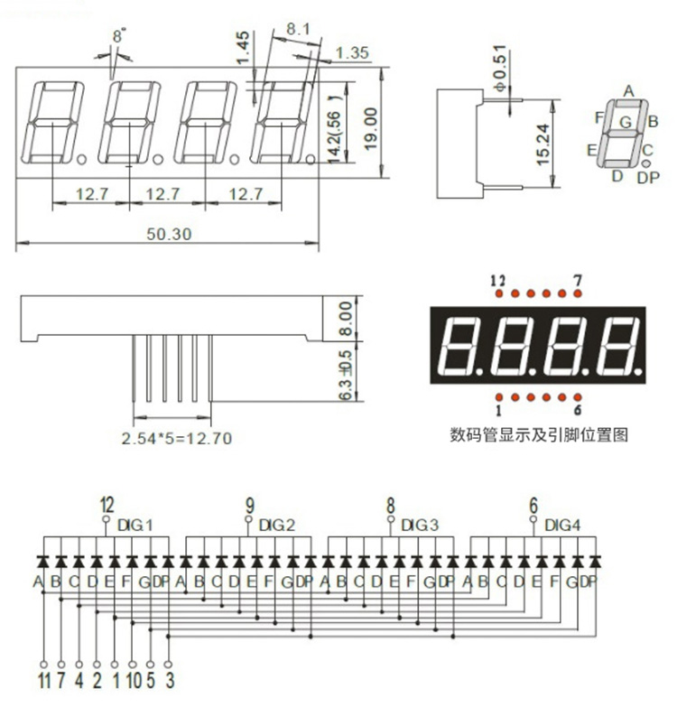 三、四位數(shù)數(shù)碼管小尺寸參數(shù)(four digit display)